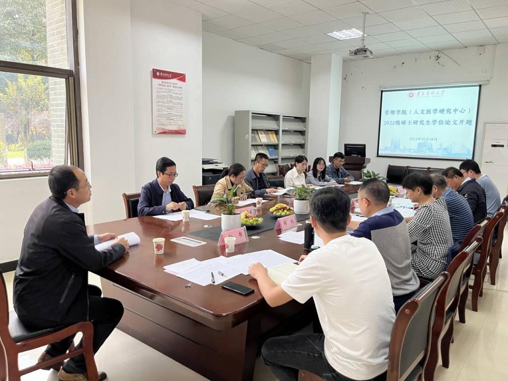 2023年10月18日14:00,管理学院人文医学、医疗服务管理专业2022级硕士研究生学位论文开题报告会在新蒲校区人文楼管理学院122会议室举行。本次开题专家组由遵义医科大学公共卫生学院李岩教授,遵义医科大学人文医学研究中心龙艺教授,遵义医科大学附属医院循证医学中心肖政教授,遵义医科大学管理学院冯毅教授、毕泰勇副教授组成。李岩教授担任开题专家组组长,朱千教授担任学院督导专家,管理学院杨文浩老师担任开题报告秘书。人文医学和医疗服务管理专业的2022级硕士研究生及其指导教师参加了本次开题报告会,2023级硕士研究生亦到场参加了观摩学习。此次开题报告会由管理学院副院长魏来教授主持。