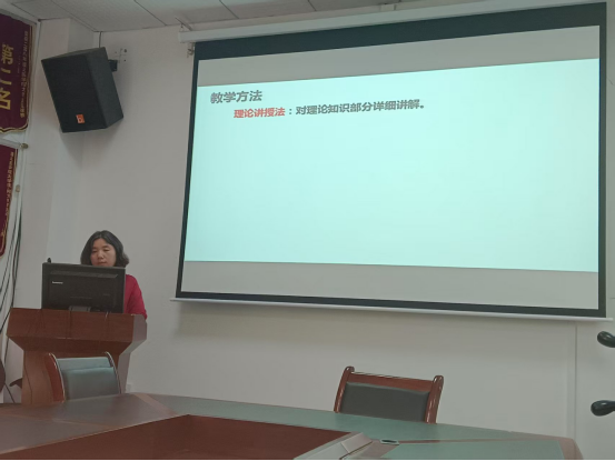 主备人周丽老师以“五备”形式进行说课,涵盖课程大纲、教材、教法、学法和训练五个关键方面。他围绕学生的职业需求,提出培养临终关怀伦理判断与沟通能力的具体目标。创新采用“角色扮演+情景模拟”与“沉浸式影片片段赏析”相结合的方式,引导学生体验医患双重视角。