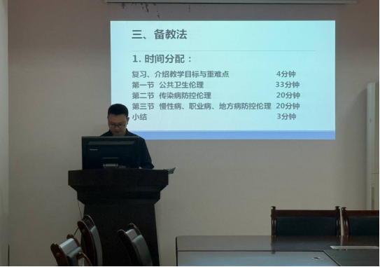 本次集体备课围绕《医学伦理学》课程展开,重点研讨了第七章“公共卫生与疾病防控伦理”。刘学平老师根据五备法,进行了备教材、备大纲、备教法、备学法、备训练的专题汇报。对本章教学目标、教学重点和难点进行了详细阐述,明确了本节课程在培养学生伦理判断力和职业责任意识中的重要作用。他强调,应将理论教学与现实案例相结合,帮助学生在分析公共卫生事件时形成系统的伦理思维。